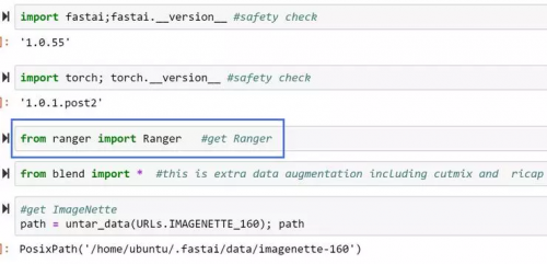在 FastAI 中,合并 RAdam 和 LookAhead 的代码是一件非常容易的事情,他使用的 LookAhead 代码来自 LonePatient,RAdam 则来自论文作者们的官方代码。Less Wright 把合并后的这个新优化器称作 Ranger(其中的前两个字母 RA 来自 RAdam,Ranger 整个单词的意思“突击队员”则很好地体现出了 LookAhead 能出色地探索损失空间的特点)。