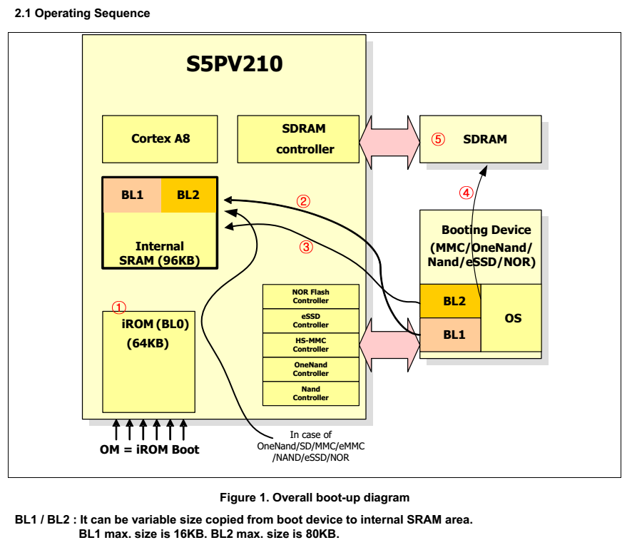 BL2做的就是先初始化SDRAM/DRAM,也就是内存,并把操作系统程序代码复制到内存中,然后程序调到内存中继续执行,整个过程完成。