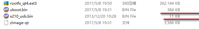 我们再看 x210_usb.bin 和 uboot.bin 这两个文件大小