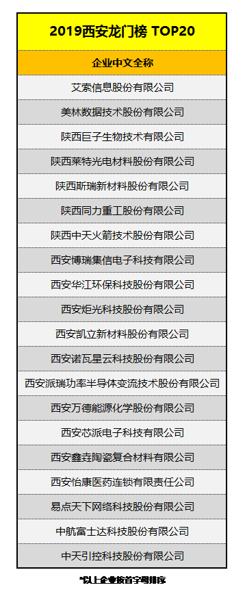 2019年08月30日 | 三家光电芯片企业上榜了, “西安龙门榜TOP20”榜单出炉