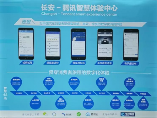 作为腾讯智慧4S店方案落地的样板工程,长安腾讯智慧体验中心在此次智博会中亮相。依托腾讯微信公众号、企业微信、移动支付、小程序等腾讯“数字工具箱”,长安汽车可以为用户提供精准服务推送、预约试驾、到店接待、成交到售后维修保养、线上CRM、社区分享等智能化服务。