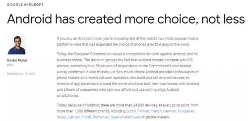 谷歌当然不服气了,CEO 出面回怼欧盟,意思大概就是: