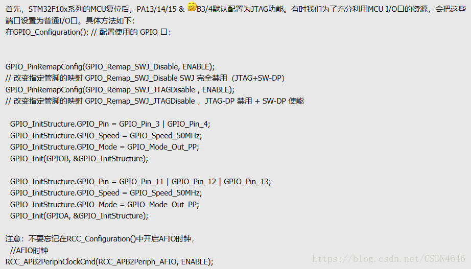 2)在复用JTAG接口PB4时候,遇到了一些问题