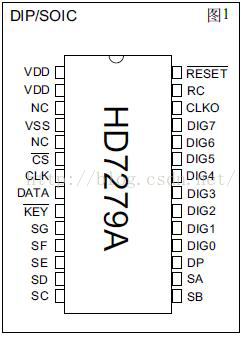HD7279A是一片具有串行接口的,可同时驱动8位共阴极数码管(或64只独立LED)的智能显示驱动芯片,该芯片同时还可以连接多达64健的键盘矩阵,单片即可完成LED显示、键盘接口的全部功能。