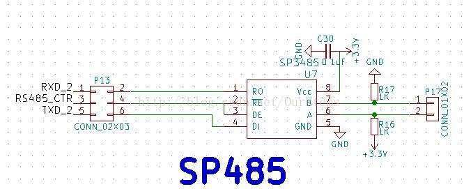 当RE为低电平时,SP3485处于接收数据状态,将来自AB总线上的数据接收到单片机的RXD引脚。当总线A、B的电压差为+0.2V时,说明收到的数据为1即高电平。当总线A、B的电压差为-0.2V时,说明收到的数据为0即低电平。