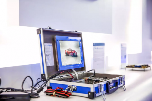 展厅中这款基于Intel® MAX® 10 FPGA做的车载娱乐系统,将演示全芯片MAX® 10 FPGA方案,它通过MIPI DSI接口,使用外置被动D-Phy适配器实现视频数据的收发。它可以做到4K的高清效果,每秒可以处理60帧的图片,具有广阔的应用前景。