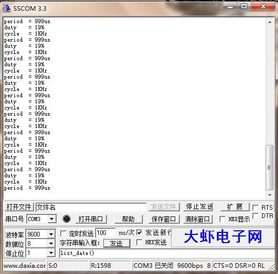 PB7和PC7连接的串口输出情况:实际周期1KHz占空比40%