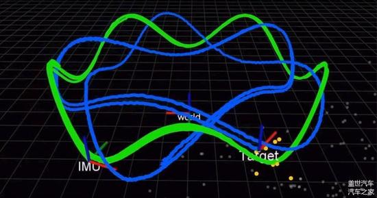 该团队利用3D激光雷达和惯性传感器,构建基于平面的3D地图。激光雷达与雷达类似,但使用的是光而不是无线电波。不同颜色的点代表不同平面,绿线代表真实轨迹,蓝线代表SLAM算法估算轨迹。