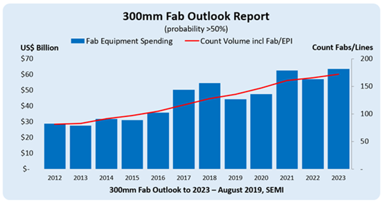 2019年09月06日 | SEMI:未来5年12英寸晶圆厂设备支出中国或第二