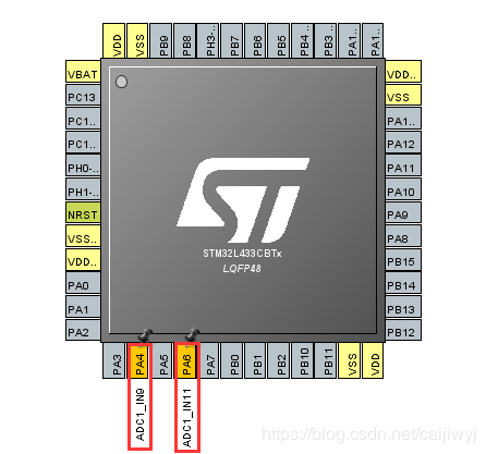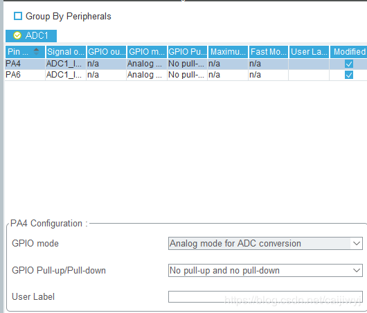 1.将PA4和PA6配置成ADC模式