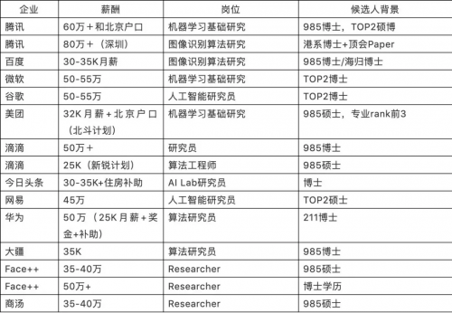 其中腾讯、阿里出价最高,不但为候选人奉上60万+的年薪,还附赠一线城市(北京、深圳)的户口。