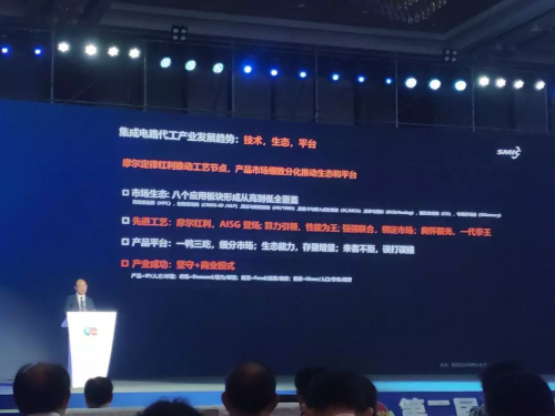 赵海军说道:“集成电路代工产业的发展趋势是‘手机,一年一代’,其未来发展有两个动力:一个是摩尔定律红利推动工艺节点;第二个是产品市场细致分化推动生态和平台。”