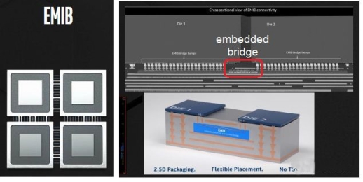 利用利用高密度的互连技术,将EMIB(嵌入式多芯片互连桥接) 2D封装和Foveros 3D封装技术结合在一起,诞生了Co-EMIB,它可实现高带宽、低功耗,以及相当有竞争力的I/O密度。Co-EMIB能连接更高的计算性能和能力,让两个或多个Foveros元件互连从而基本达到SoC性能,还能以非常高的带宽和非常低的功耗连接模拟器、内存和其他模块。