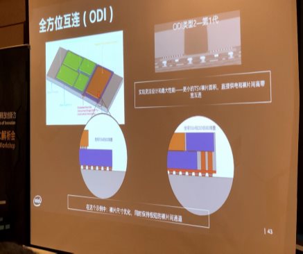 为了进一步提高水平与垂直堆叠的灵活性,英特尔还推出了一个额外的物理互连层技术——ODI。此技术为封装中小芯片之间的全方位互连通信提供了更大的灵活性。ODI存在于基板与芯片之间,在这一层上,英特尔可以通过远远大于传统封装技术的密度来进行埋线和布置连接针脚。从而在保证芯片供电的情况下实现更高的互联带宽。