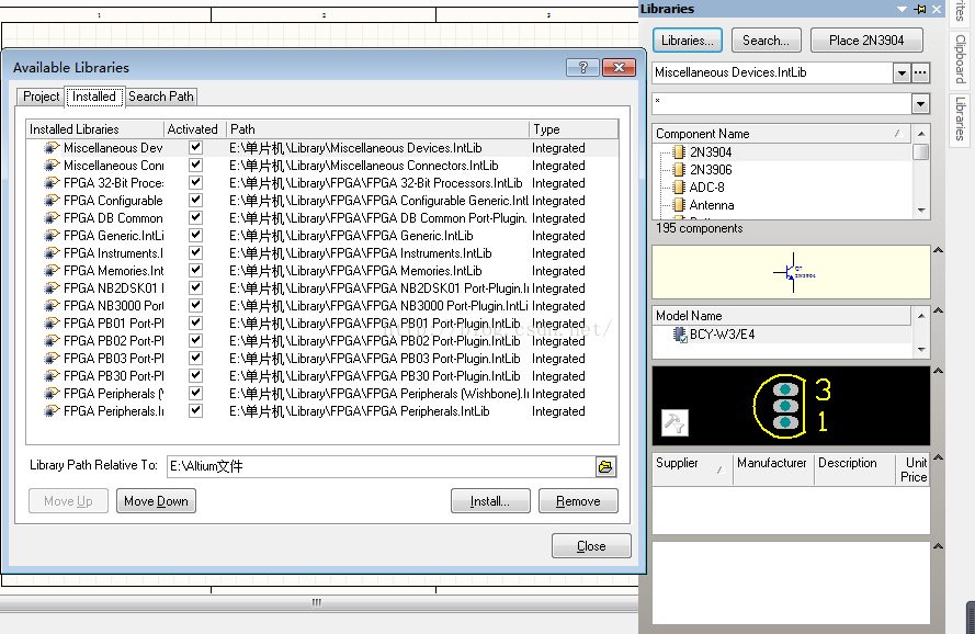 4、加排阻(在自定义的库文件里搜排阻,然后放置)
