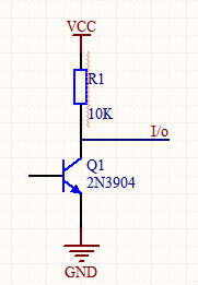 在基极处接“0”,不导通,则I/O口处为高电平