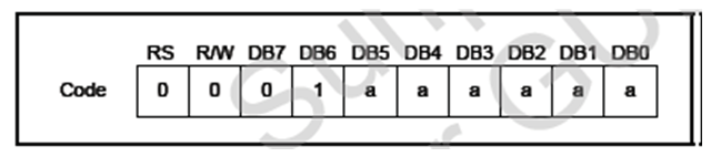 说明:这个指令用于设置DDRAM地址。在对DDRAM进行读写之前,首先要设置DDRAM地址,然后才能进行读写。前面我们说过,DDRAM就是LCD1602的显示存储器。我们要在它上面进行显示,就要把要显示的字符写入DDRAM。同样,我们想知道DDRAM某个地址上有什么字符,也要先设置DDRAM地址,然后将它读出到单片机。