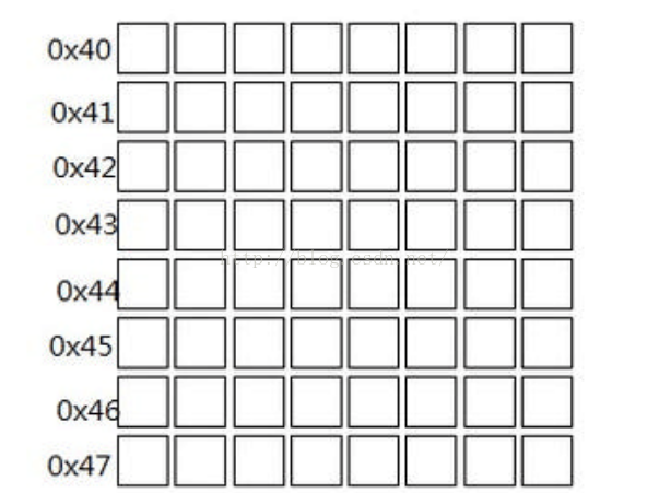 DDRAM(Display Data RAM)就是显示数据RAM,用来寄存待显示的字符代码。共80个字节,其地址和屏幕的对应关系如下(如图8):