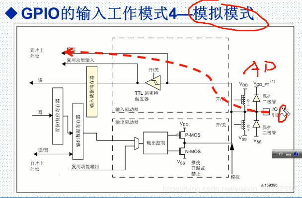 4 模拟输入 输入的是模拟电压,这时不经过施密特触发器