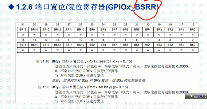 第一步:1. 通过CPU写相关的寄存器,比如 位设置和清除寄存器,(操作位设置、清除寄存器也是间接的操作输出数据寄存器)