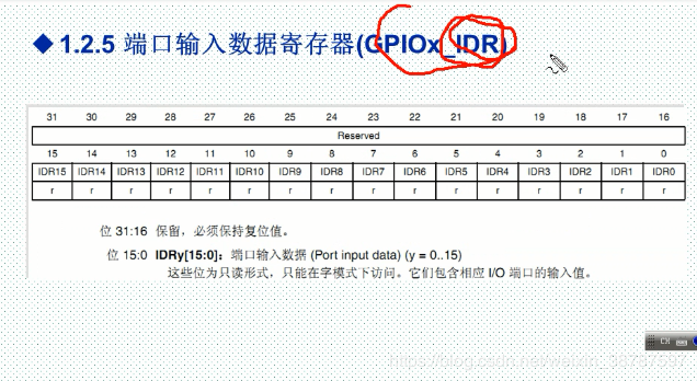 这是个只读寄存器,比如说我们要读 PA0,就看他的 IDR0 是1的话说明 是高电平, 0
