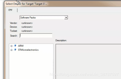 2打开keil project / New project 保存在user下面,然后就是下图所示的选择芯片。