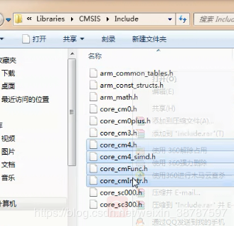 我们从 STM32 参考资料固件库 libraries/ CMSIS/lnclude/ 将那4个文件复制到 新建目录的 SYSTEM/sys