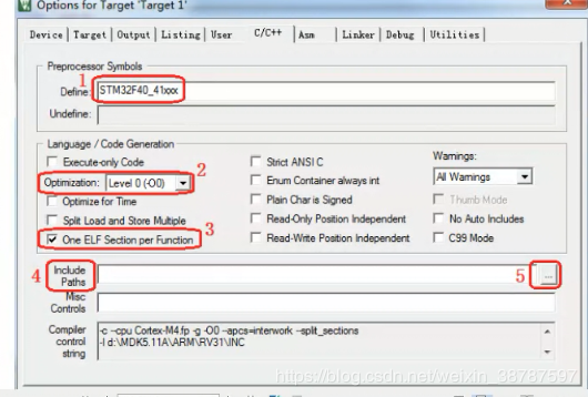 然后添加头文件路径 Define 添加全局宏定义 不优化