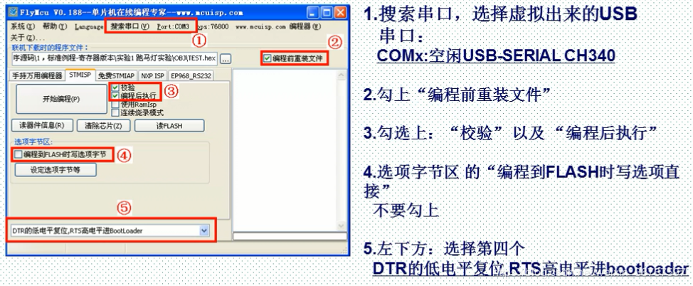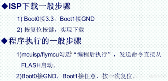 boot 0 boot1 接GND 下载程序 和运行 STM32 的ISP下载只能用串口一,利用FlyMCU进行串口下载,