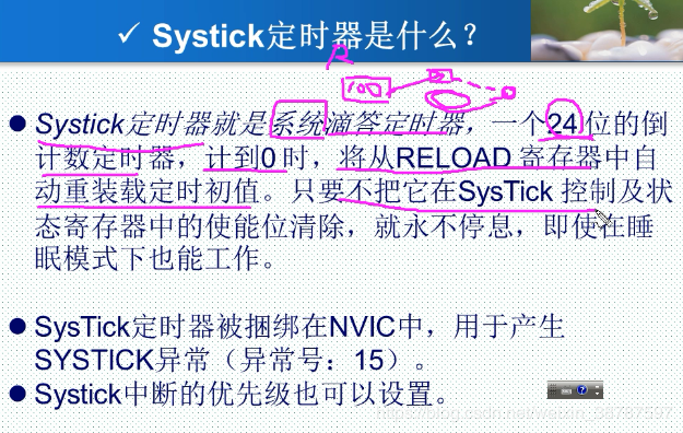 SysTick定时器它是捆绑在NVIC中,可以产生SysTick异常,SysTick也可以产生中断 ,可以设置中断优先级,可编写中断服务函数