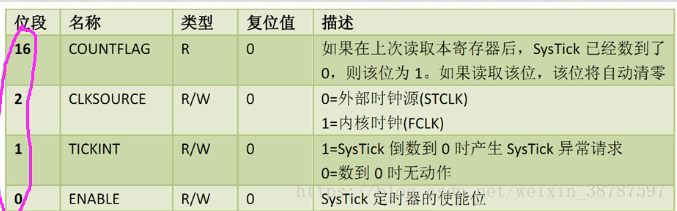 1. SysTick控制和状态寄存器 CTRL 下面这个表在Cortex M3权威指南里有。用来配置systick相关的一些使能位和时钟。