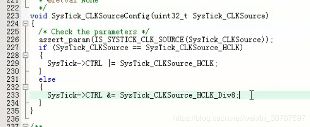下面看代码 这个 函数有一个入口参数叫 Systick_CLKSource