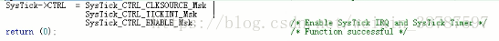 上图代码就是就是开启这个SysTick定时器,1设置 时钟源 2开启中断 3使能SysTick定时器。