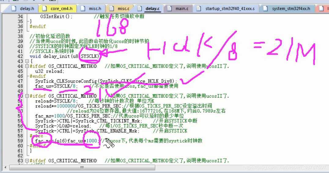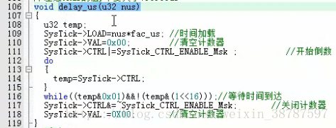 1,。delay_init(u8 SYSCLK) 这是对SysTick进行初始化,然后是两个 毫秒和微秒的延时。因为正点原子的delay.c里面支持ucos操作系统,所以有一部分代码是通过宏定义来支持的。