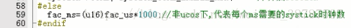 上图中 的两个变量在初始化函数当中我们会设置他的值,假如系统时钟是 168M,SysTick的时钟频率是系统时钟的8分频,也就是21M,那么 fac_us 含义就是我们要延时1us要用多少个SysTick时钟周期?