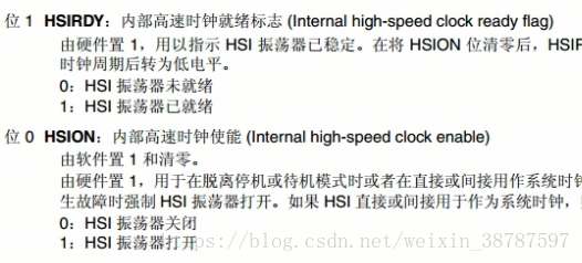 其中,CR寄存器主要是用作相关时钟源的使能,例如他的最低位是内部高速时钟使能,第二位是内部高速时钟使能就绪。因为我们在使用时钟源时必须使能相应的寄存器的相应位,这里我们以HSI为例。那么使用的顺序就是: