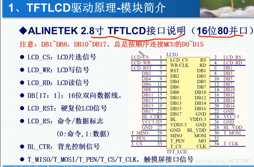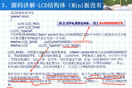 TFTLCD没有地址线没有地址线,而把RS连接到A0-A15其中的任意一根线。当地址线来用,这样就可以吧TFTLCD当成一个SROM来用了。