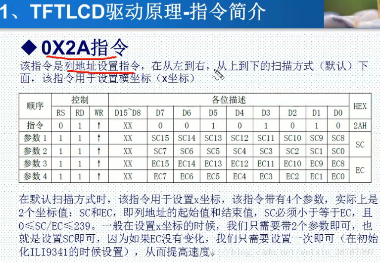 lcddev.setxcmd=0X2A; //设置写x坐标指令