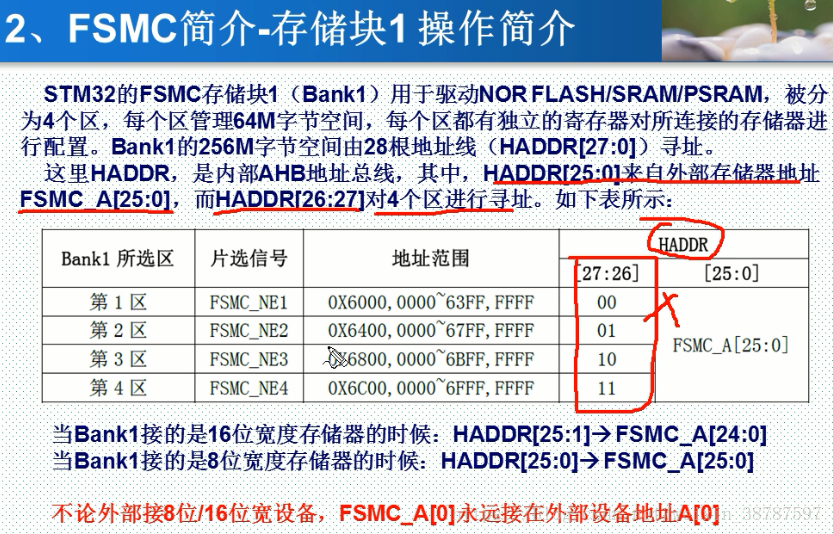 当bank1接的是16位宽的存储器的时候要右移一位对齐。