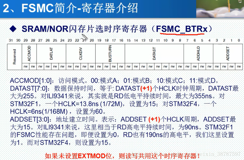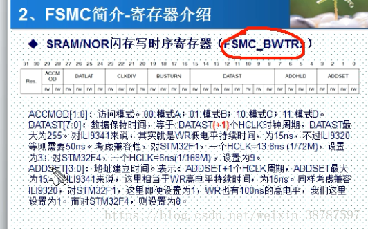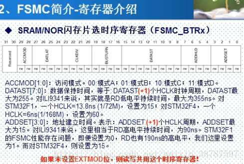 上图中如果单片机是STM32F4那么DATAST就不需要加1,而对于ADDSET[3:0]F1 F4都需要加1