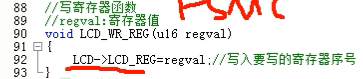 这样一个函数就完成了写寄存器操作,因为有FSMC会自动完成