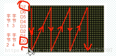 根据下面这个来进行取模设置。 输出方式是从上到下从坐到右