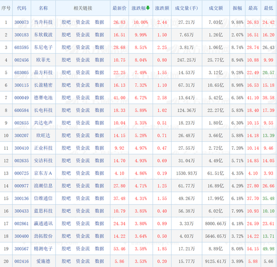 不过iPhone发布在即,两家公司股价也呈现积极增长的趋势。今日收盘,德赛电池涨幅达到6.72%,报收41.00元/股;欣旺达涨幅5.28%,报收14.15元/股。