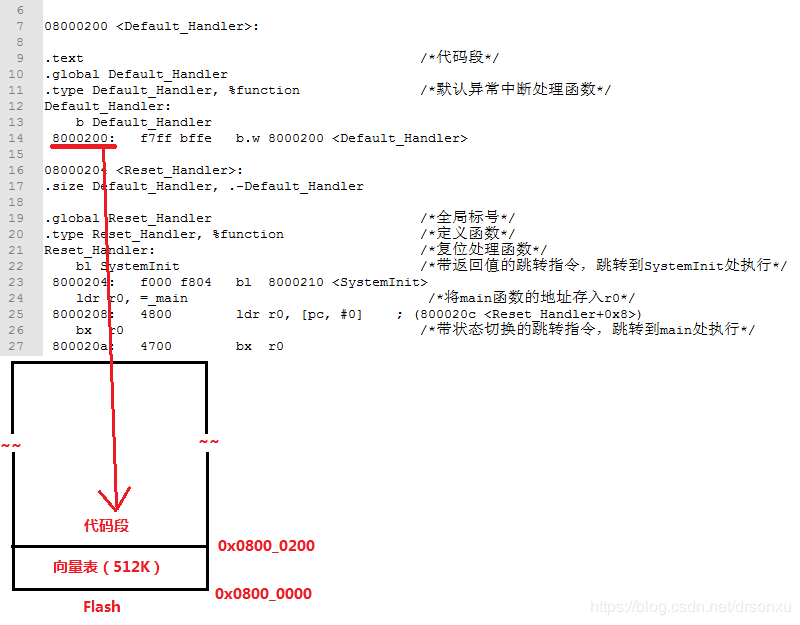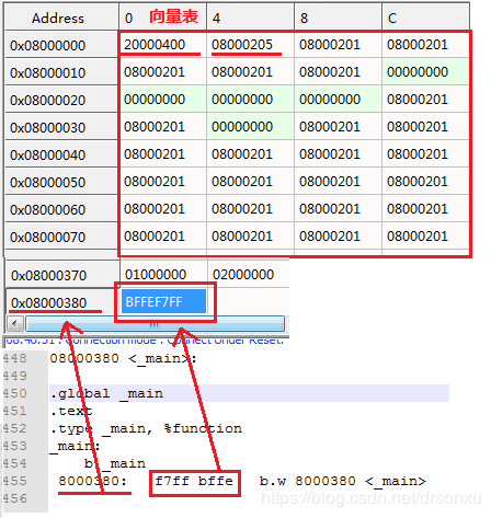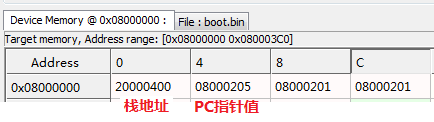 所以,我们看到第一条指令是放在地址0x0800_0200处的。