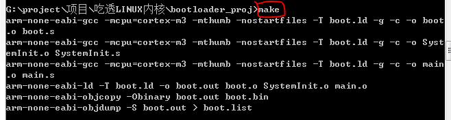 2.在命令行中,进入上一步创建的文件夹,输入make,编译项目。如图: