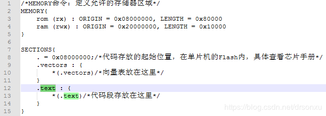 用于链接各个目标文件,定义各个代码段,数据段的位置。如图: