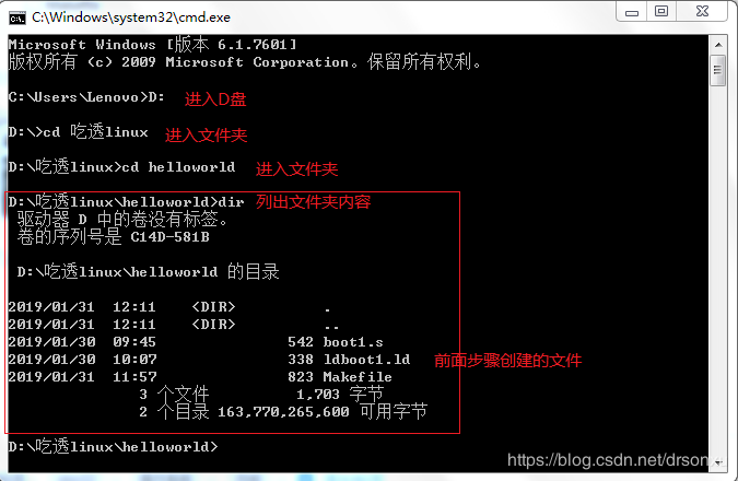7.通过在命令行中输入相关命令(百度可以查找),进入步骤1中创建的文件夹。