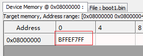 10.下载成功后,如图,0x08000000处的代码与反汇编的代码相同。第一个实验到此结束,感觉上是成功了。为了验证使用ST-Link Utility软件下载bin格式文件到stm32单片机后,程序是否可以运行,在本系列的第4篇文章将做一个点亮LED的实验。