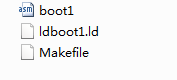 3.创建文件Makefile,这是编译用的工程文件,用于编译boot1.s文件。Makefile教程,可以网上搜索或阅读Makefile文档。代码如下: