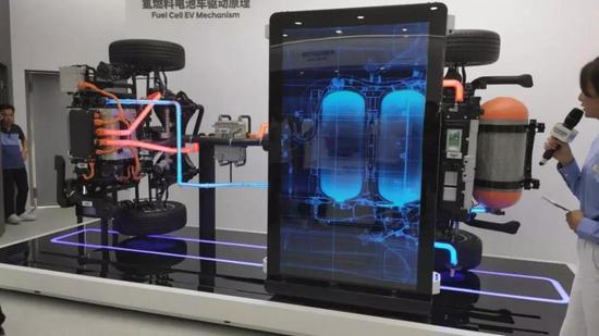 在氢燃料电池车驱动原理展区内,主要详细介绍了氢燃料电池及其驱动原理。